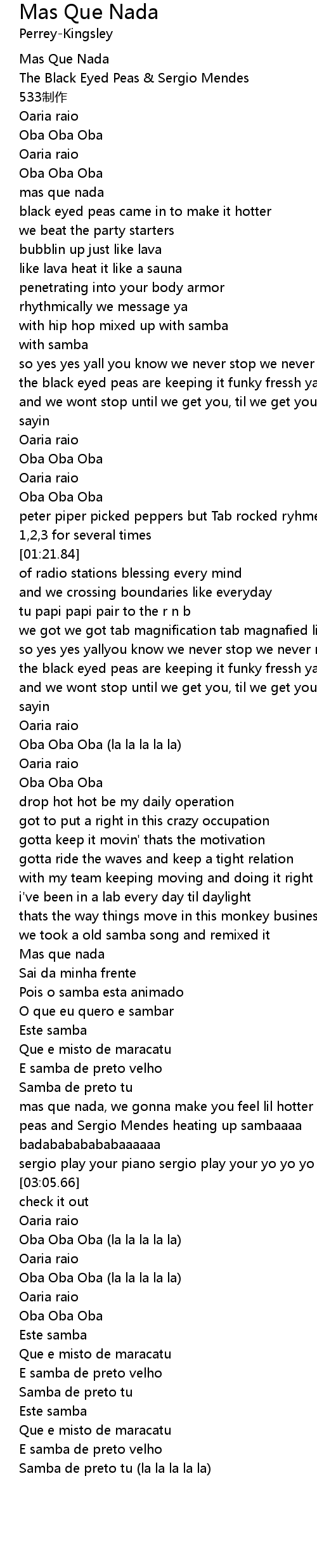 | [03:37.26] | Oba Oba Oba (la la la la la) |