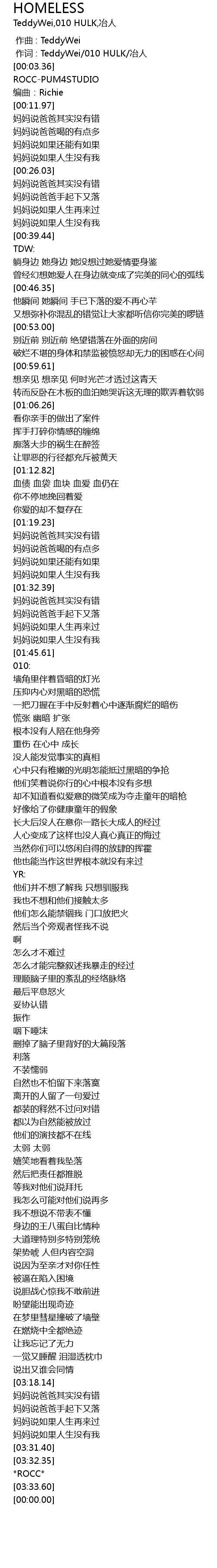| [00:00.000] | 作词 : TeddyWei/010 HULK/冶人 |