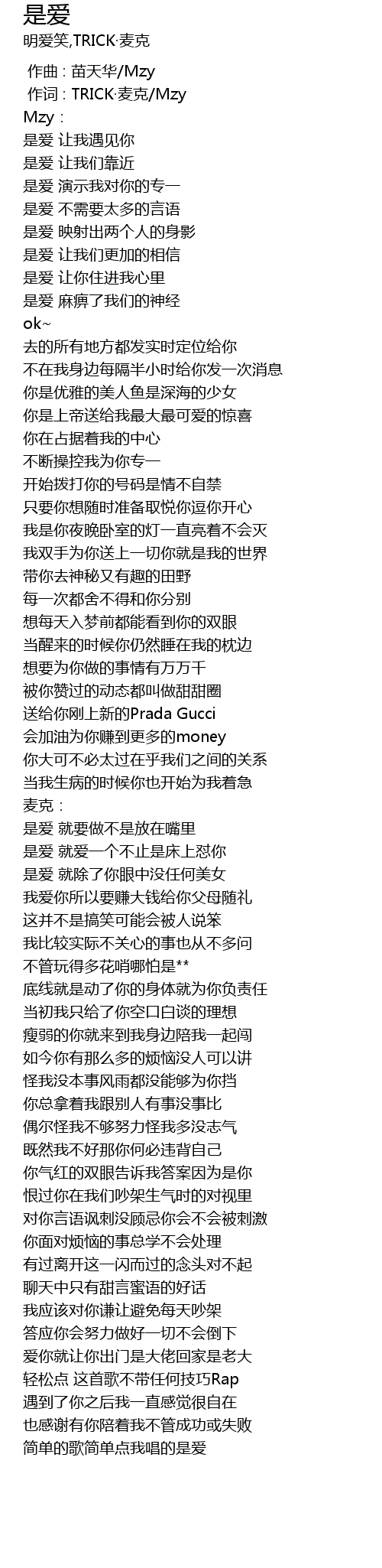 | [00:01.000] | 作词 : TRICK·麦克/Mzy |