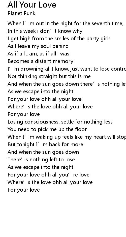 | For your love ohh all you' re love | |