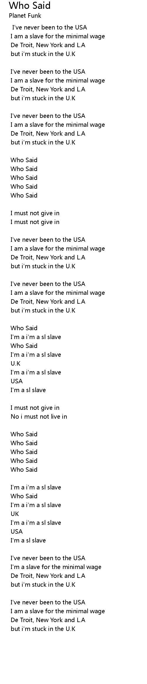 I'm a slave for the minimal wage |