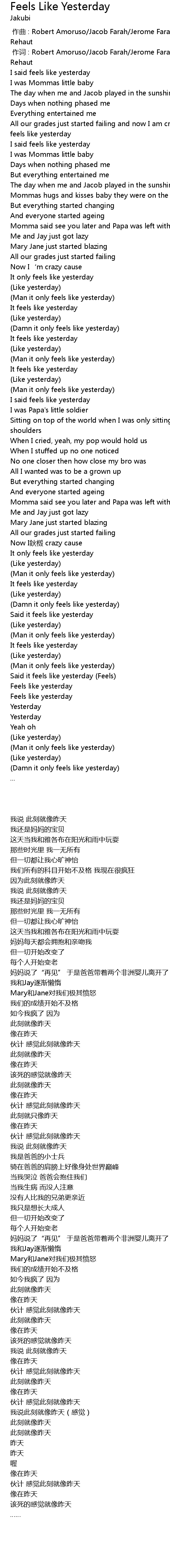 | [02:26.37] | Said it feels like yesterday Feels |