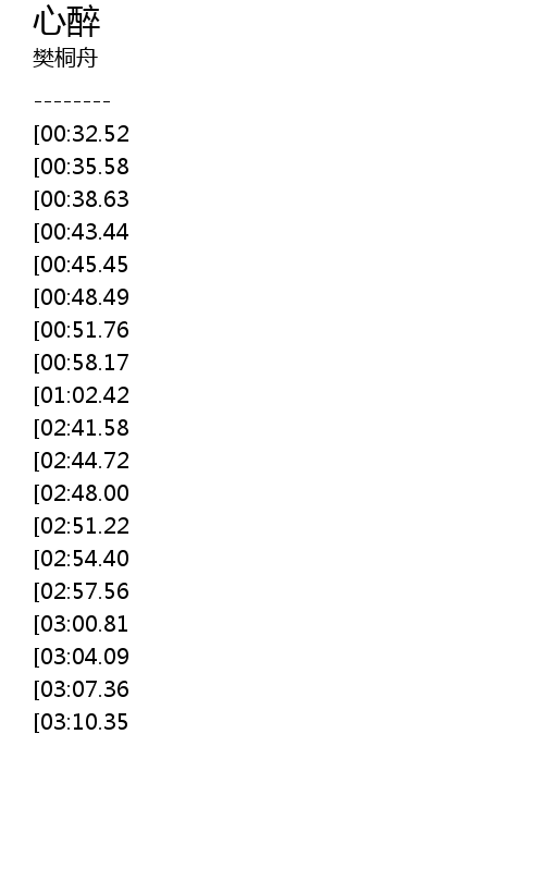 | [03:13.90][02:41.58][01:08.00] | 是你让我心醉 |