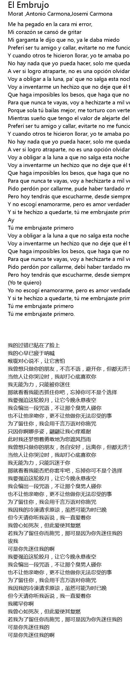 | [02:31.93] | Y si te hechizo a quedarte, tú me embrujaste primero |