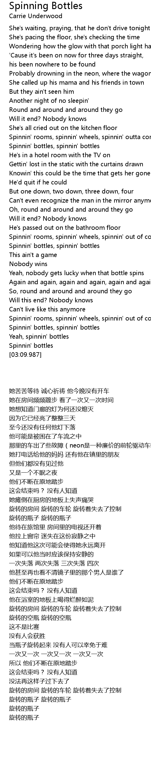 Spinnin' rooms, spinnin' wheels, spinnin' outta control |