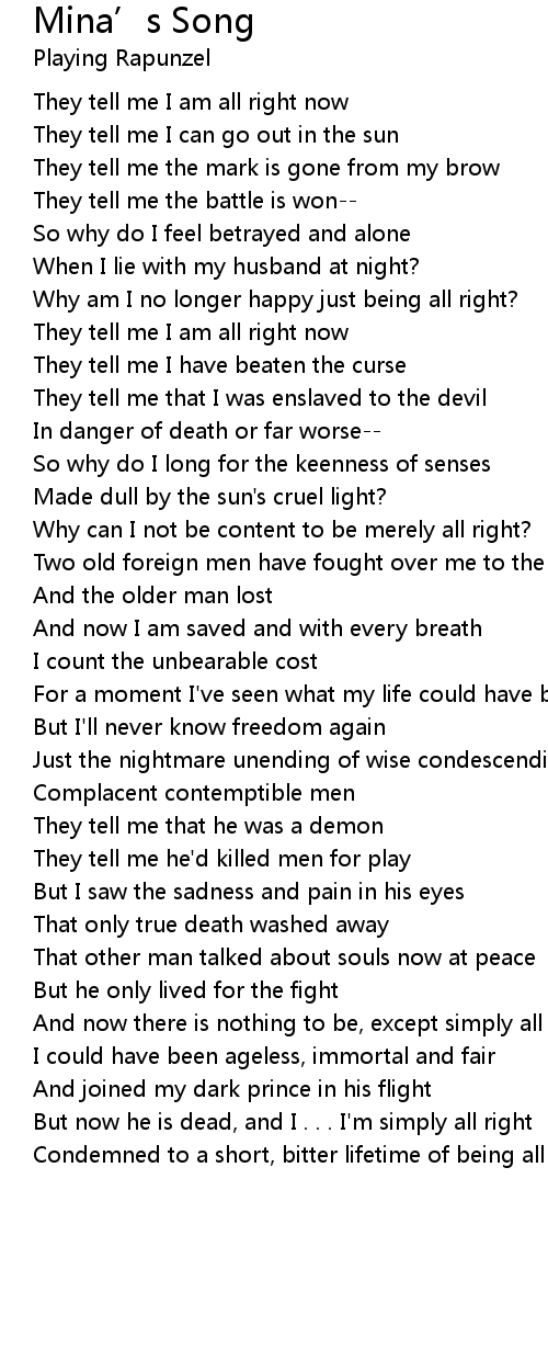 They tell me I am all right now |