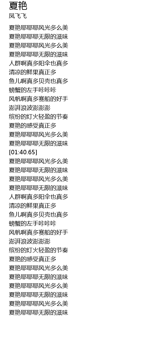| [03:00.80] | 夏艳耶耶耶风光多么美 |