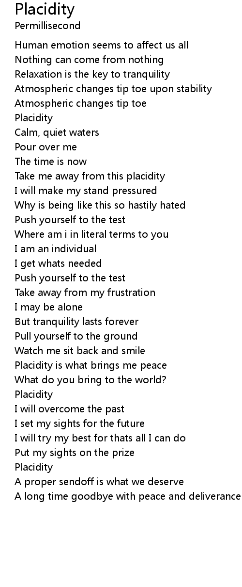 Placidity is what brings me peace |