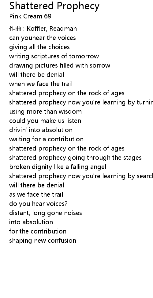 | shattered prophecy now you' re learning by searching turning the pages of life | |
