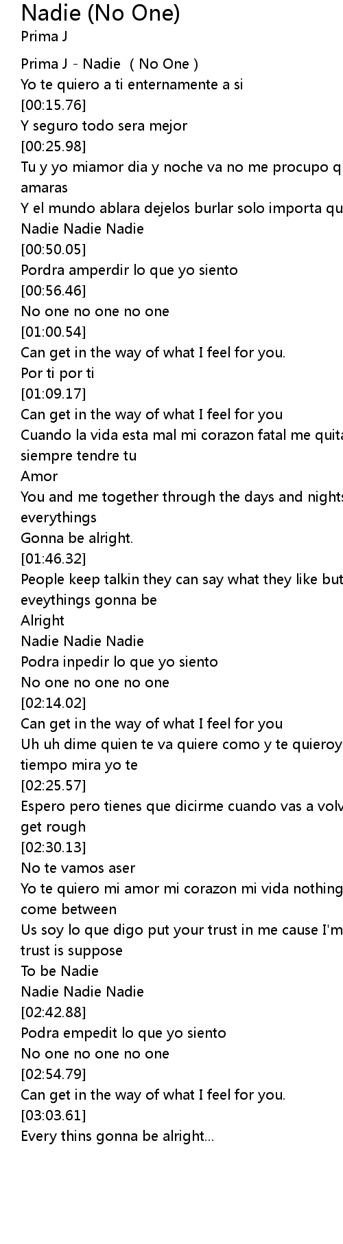 | [02:33.95] | Yo te quiero mi amor mi corazon mi vida nothing in this world can ever come between |