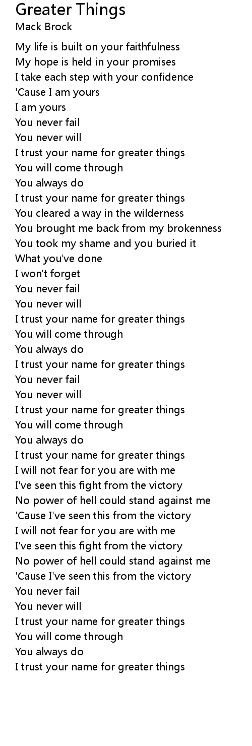 I trust your name for greater things |