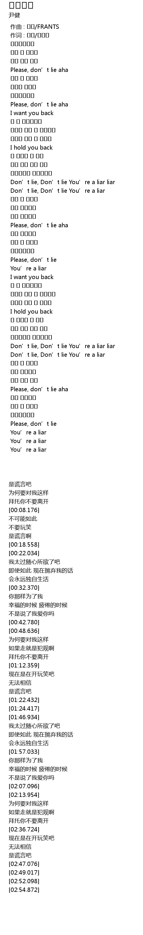 | [00:48.636] | Don' t lie, Don' t lie You' re a liar |