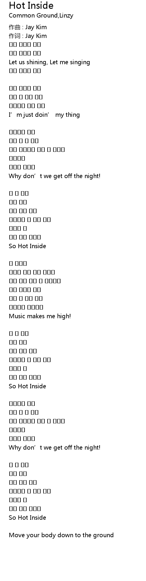 | 作词 : Jay Kim | |