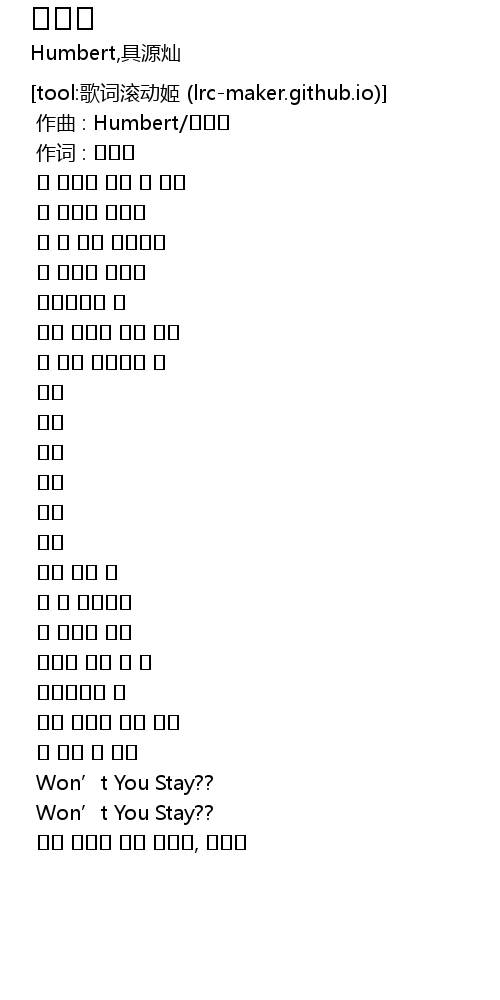 | [02:58.347] | Won' t You Stay?? |
