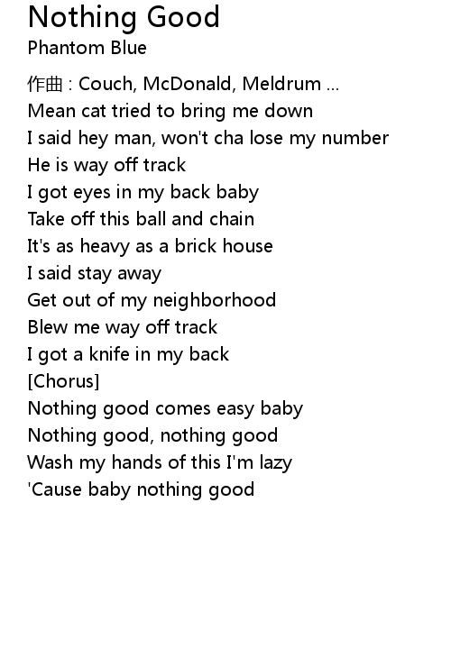 | Nothing good, nothing good | |