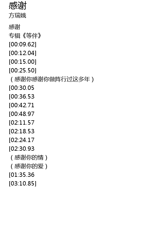 | [00:00.00] | 感谢 |