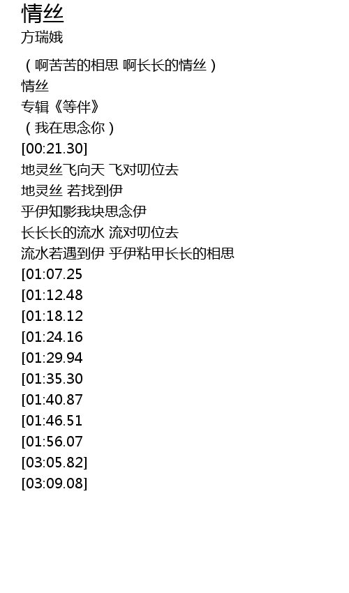 | [02:43.42][01:35.30] | 长长长的情丝 |