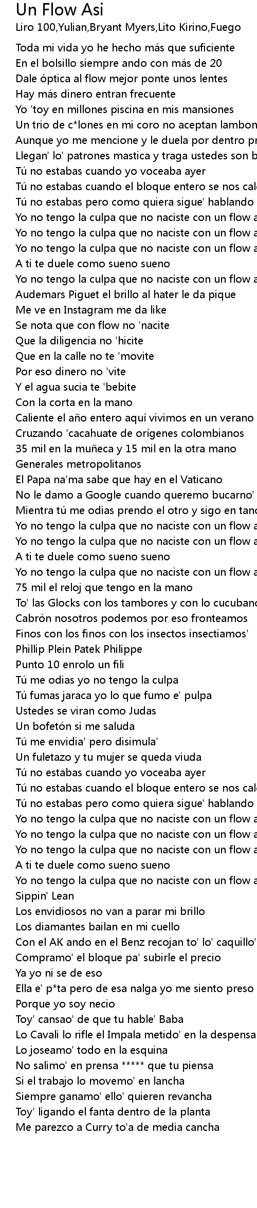 | [00:43.24] | Yo no tengo la culpa que no naciste con un flow así |