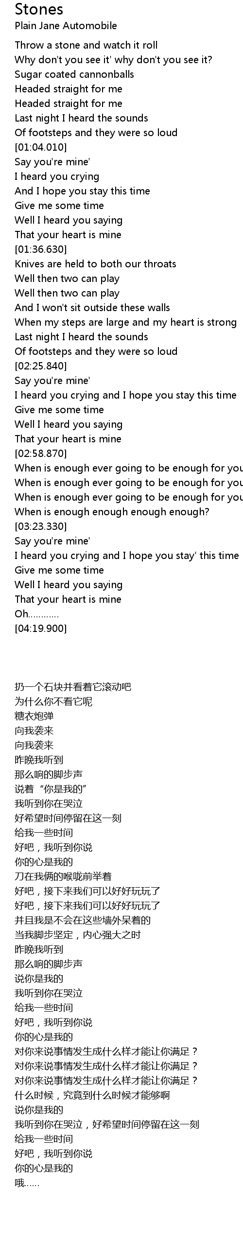 | [03:30.190] | I heard you crying and I hope you stay' this time |