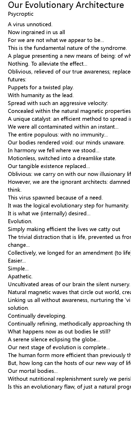 Our bodies rendered void: our minds unaware. |