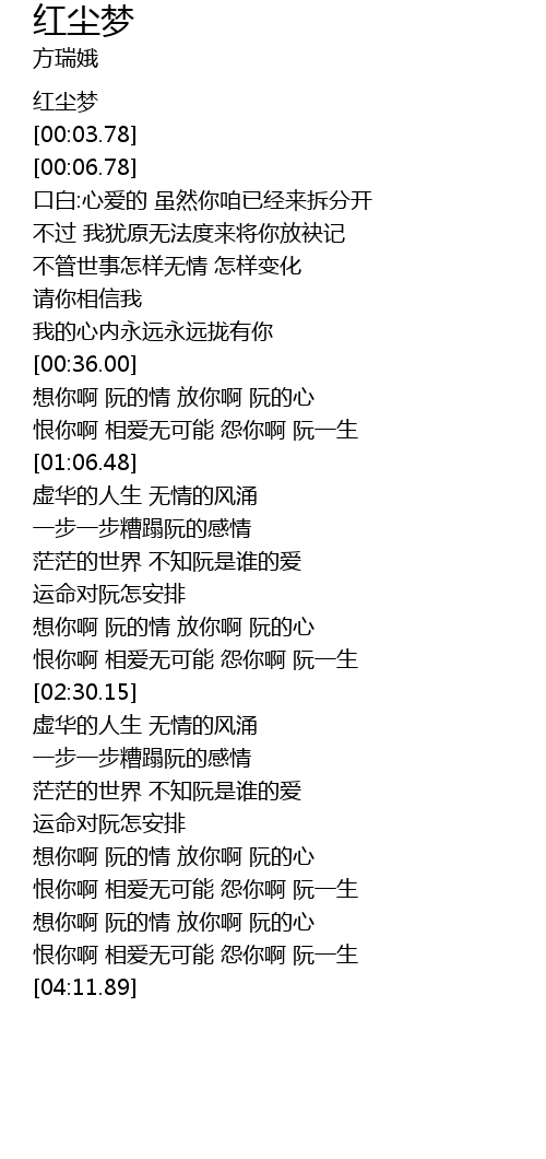 | [03:55.57] | 恨你啊 相爱无可能 怨你啊 阮一生 |