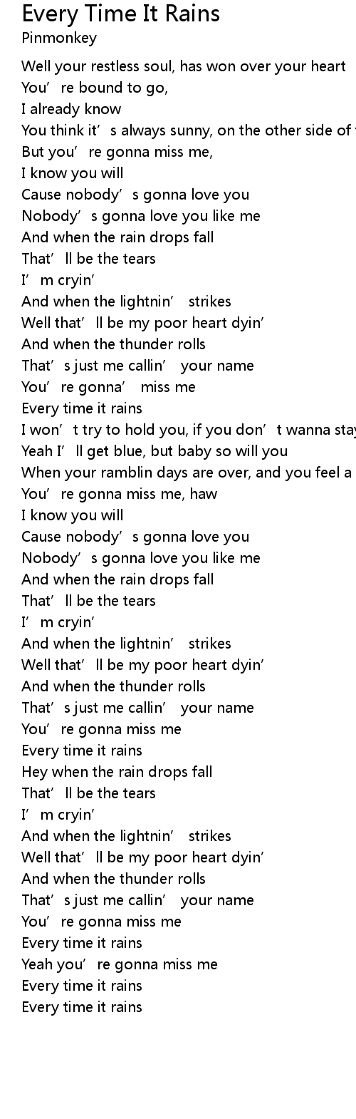 | Song | Every Time It Rains |