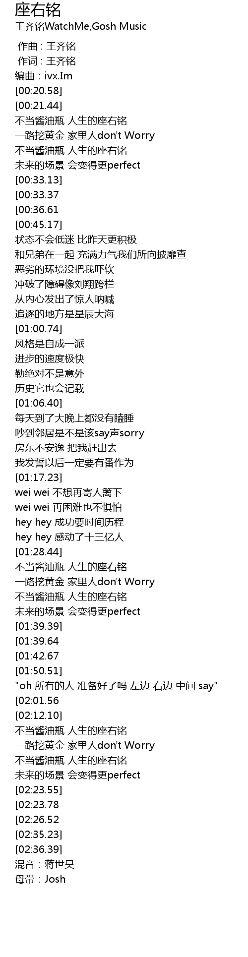 | [00:01.000] | 作词 : 王齐铭 |
