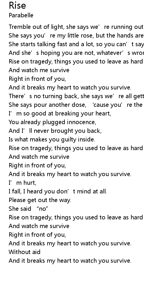 | Rise on tragedy, things you used to leave as hard | |