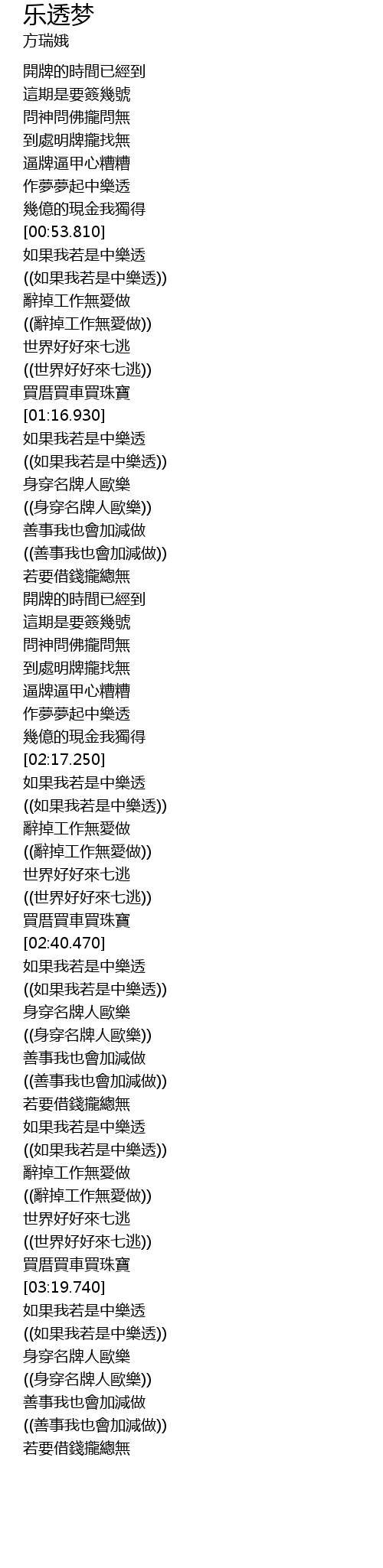 | [03:24.040] | rú guǒ wǒ ruò shì zhōng lè tòu |