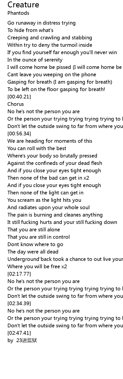 | [00:06.12] | Creeping and crawling and stabbing |