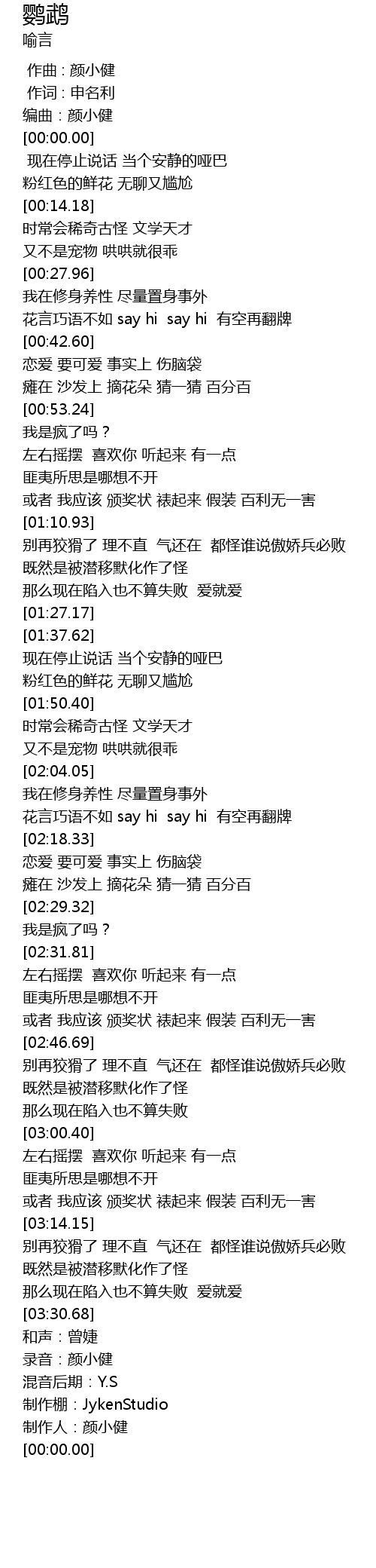 | [00:36.61] | huā yán qiǎo yǔ bù rú say hi say hi yǒu kòng zài fān pái |