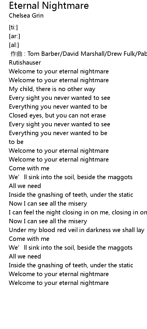 | [02:51.06] | Welcome to your eternal nightmare |