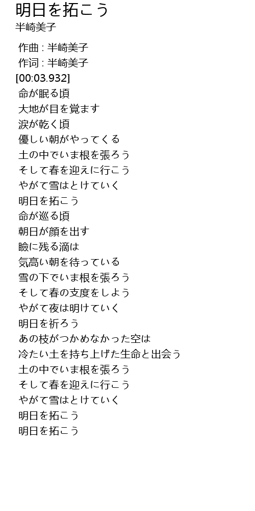| [00:58.065] | 明日を拓こう |