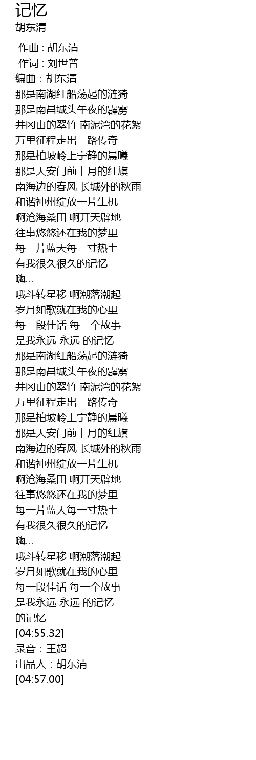 | [04:56.46] | 出品人:胡东清 |