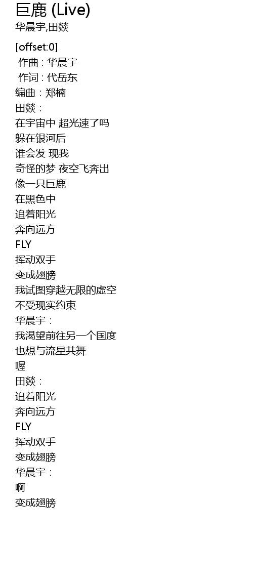 | [00:34.97] | zài yǔ zhòu zhōng chāo guāng sù le ma |