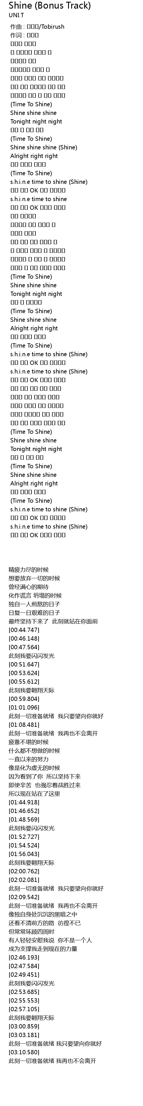 | [03:03.181] | s.h.i.n.e time to shine (Shine) |