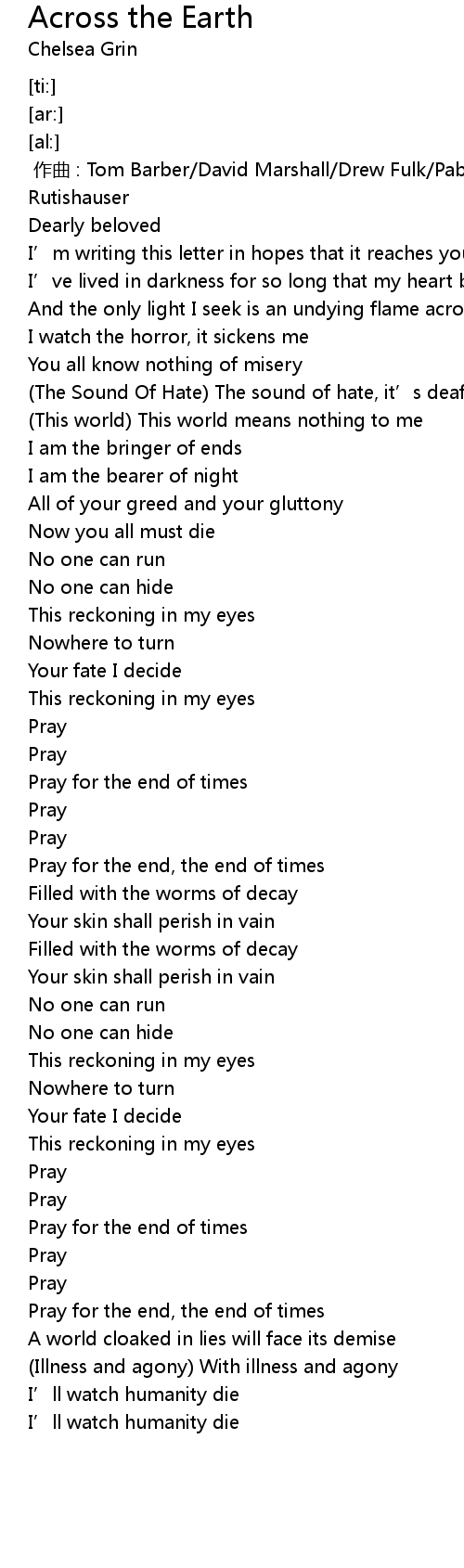 | [00:28.99] | And the only light I seek is an undying flame across the earth |