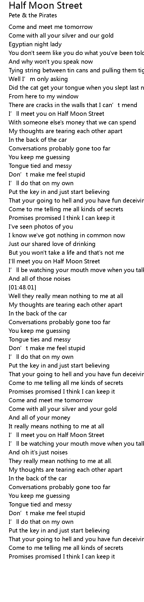 | [00:40.69] | I’ll meet you on Half Moon Street |