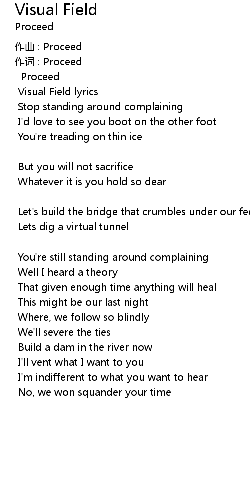 | Visual Field lyrics | |