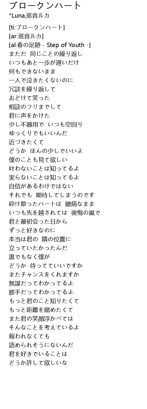 | [01:31.44] | 砕け散ったハートは 臆病なまま |