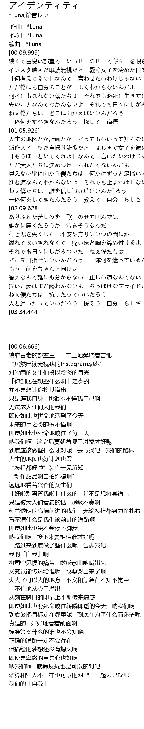 | [00:06.666] | 編曲:*Luna |