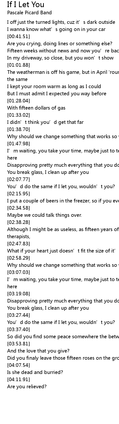 | [03:45.38] | So did you find some peace somewhere the between love you need |