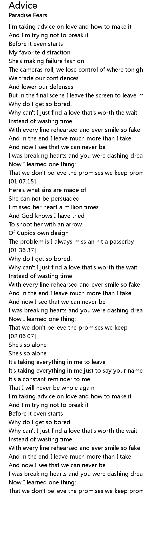 I'm taking advice on love and how to make it |