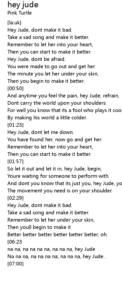 And dont you know that its just you, hey Jude, youll do, |