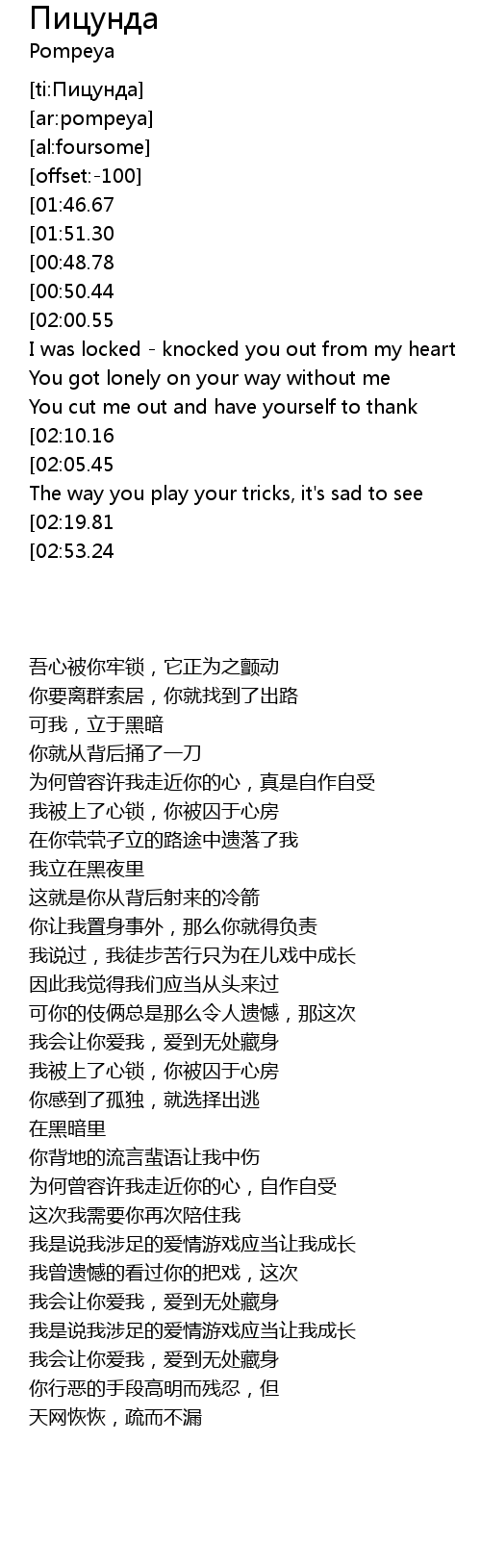 | [00:21.62][00:50.44][01:57.81] | You stabbed me in the back |