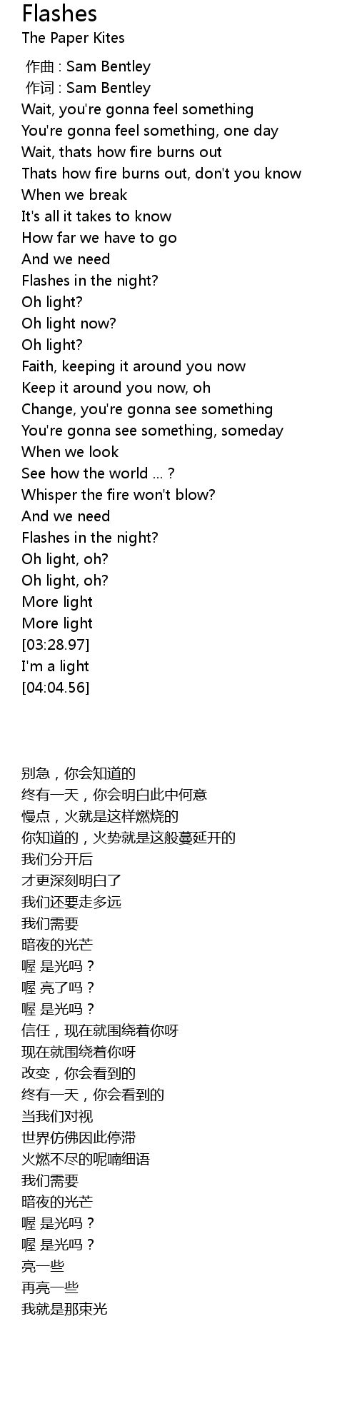 | [01:26.23] | Flashes in the night? |