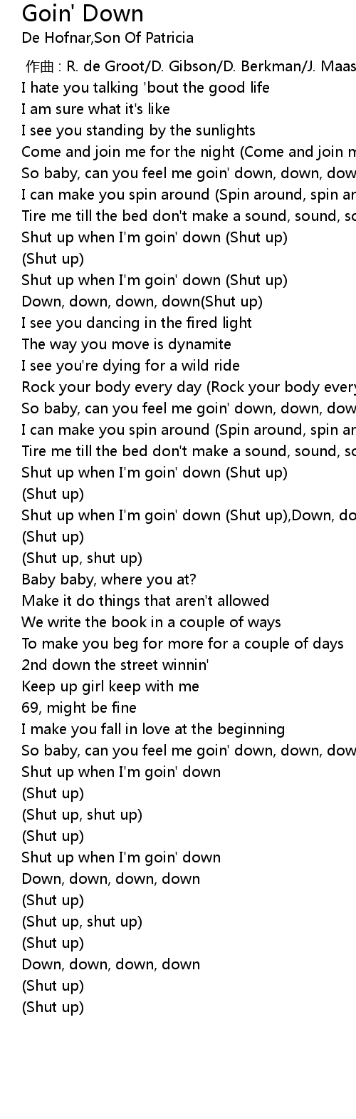 | [00:38.400] | Shut up when I' m goin' down Shut up |