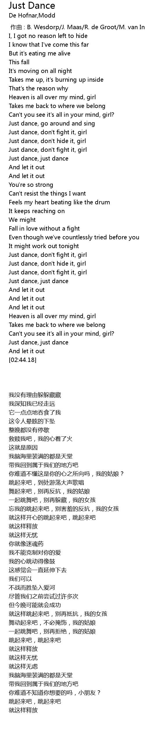 | [00:54.42] | Just dance, don' t fight it, girl |