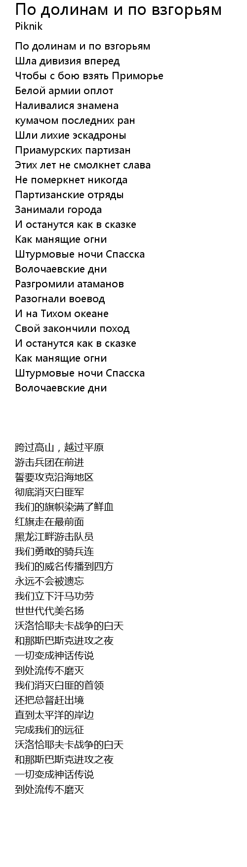 | Song | По долинам и по взгорьям |