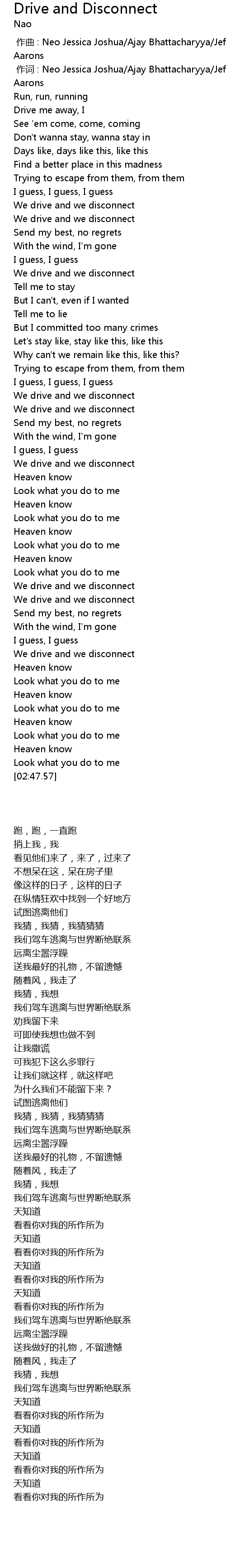 | [00:50.82] | We drive and we disconnect |